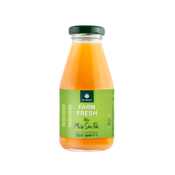 Tại trung tâm đồng bằng sông Cửu Long, chúng tôi chọn những loại trái cây tươi và ngon nhất của các nông trại gia đình địa phương. Nước Mía - Sơ ri - Tắc LE FRUIT có vị ngọt đặc trưng từ mía, ngoài ra còn có một chút vị tắc nhẹ nhàng. Bạn sẽ cảm nhận vị ngọt ngào thuần khiết theo kiểu Việt Nam.